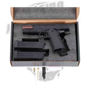 A pistola SA-VGP18 VAPOR™ apresenta um design Hi-Capa, um dos formatos mais populares entre os jogadores graças à sua excelente eficiência, fiabilidade e elevado desempenho. Este modelo incorpora um foco distintamente tático, com melhorias que visam otimizar o desempenho em jogo. Comparativamente às pistolas 1911 tradicionais, a Hi-Capa destaca-se pela sua construção mais larga e robusta, permitindo a utilização de carregadores de alta capacidade capazes de armazenar uma maior quantidade de gás, garantindo uma maior autonomia e um funcionamento mais estável durante o jogo.